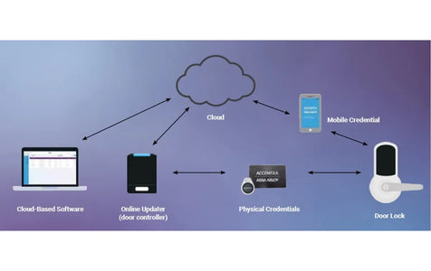 The NTX700 works in conjunction with Accentra contactless smart credential updaters, such as the NTX712 mini-mullion updater and the NTX742 wall-mounted updater, to ensure credentials remain current and secure. As users present their credentials at these updater points or high-use entry doors, permissions, audits, and security data are automatically refreshed and synchronized through the NTX700—eliminating the need for manual credential reissuance.
