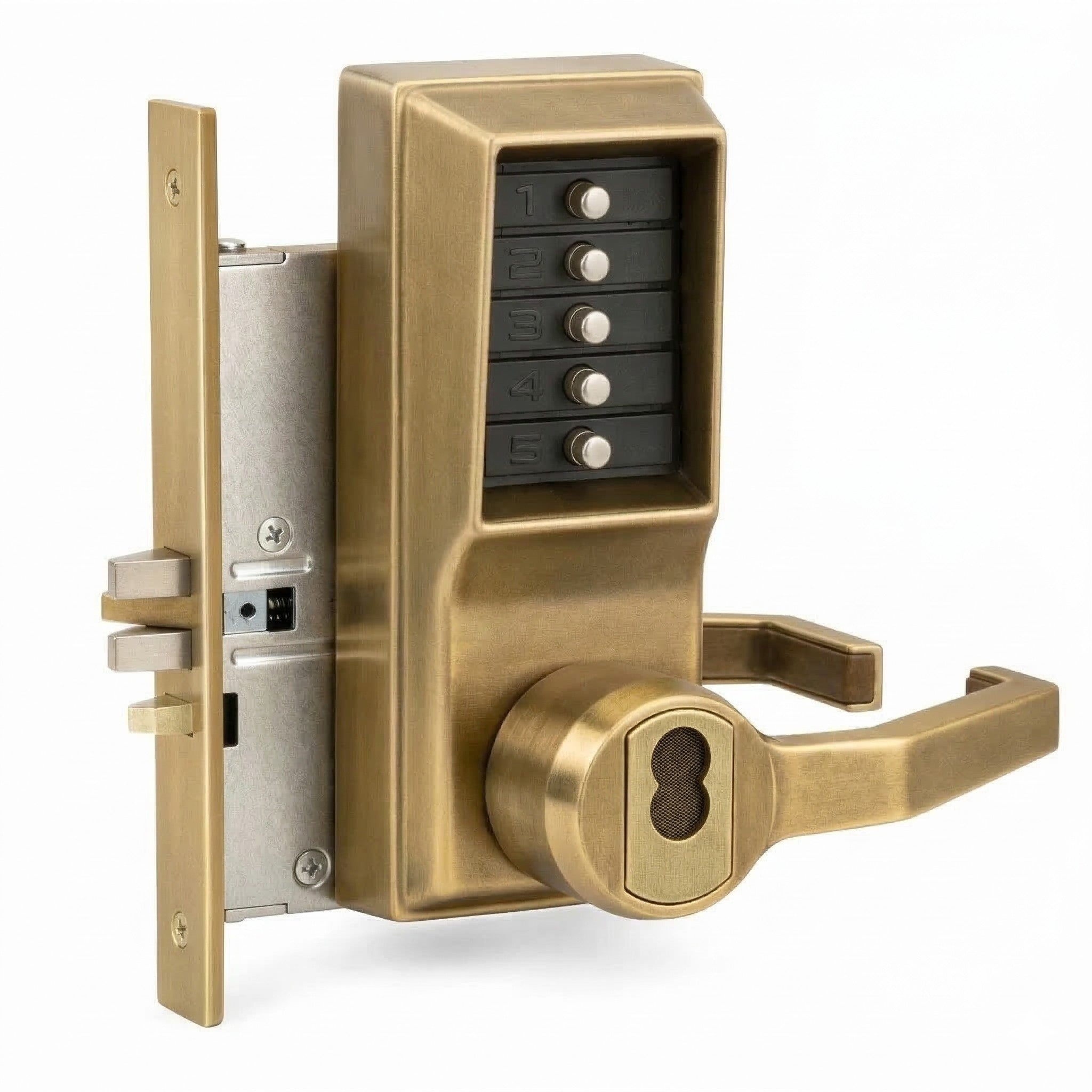 Ultra-reliable mortise combination lock from the leader in top of the line security solutions, dormakaba.  dormakaba has been making high quality security products for over 100 years.  The Simplex 8100 Series is a stand-alone pushbutton lock designed to retrofit standard