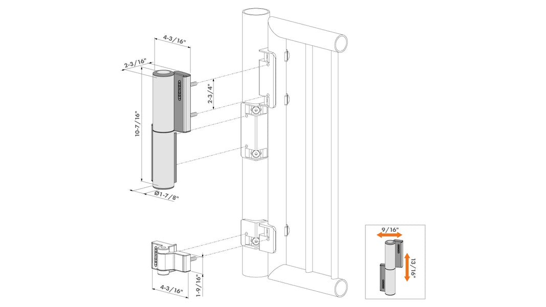 • Aluminum anodized assembly brackets for Locinox Tiger gate closer on chain link fences