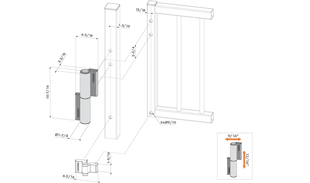 • Diameter gate profile: 1 3/8 in. to 1 7/8 in.