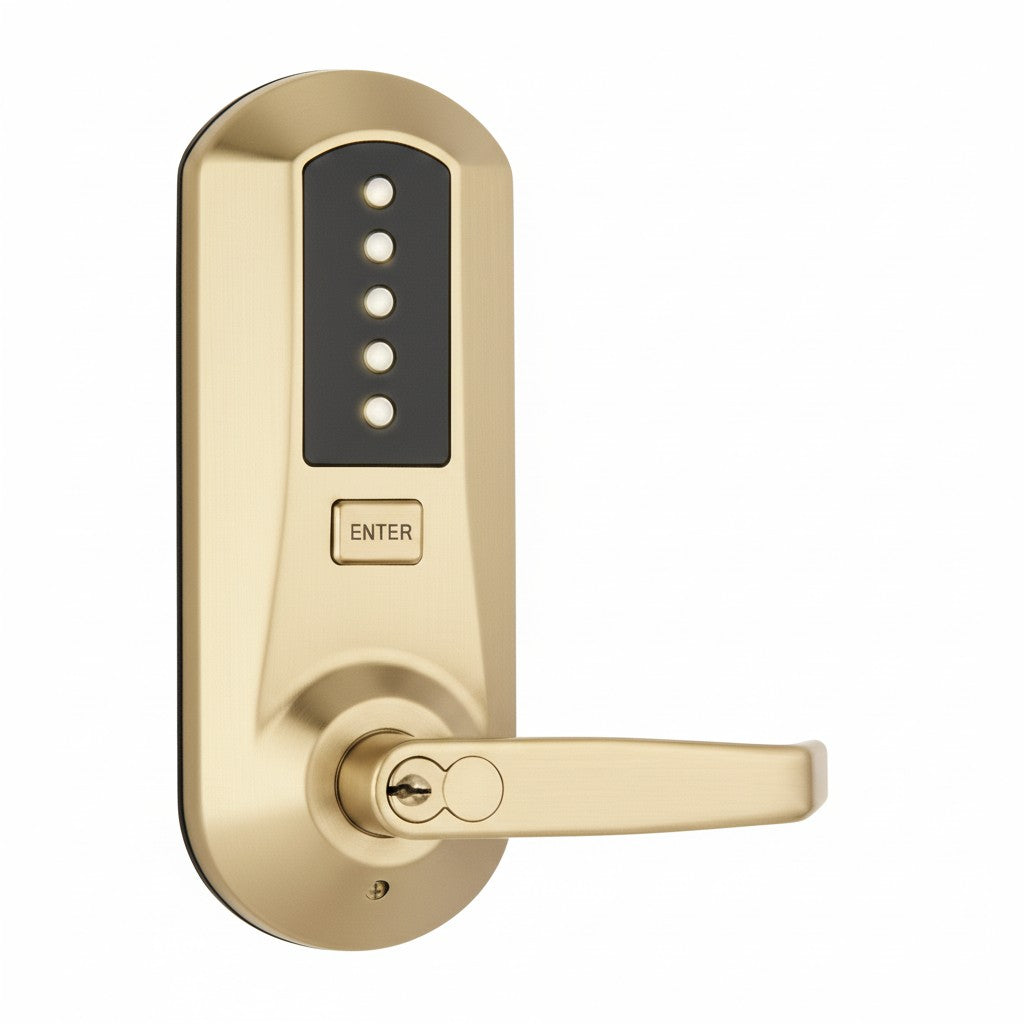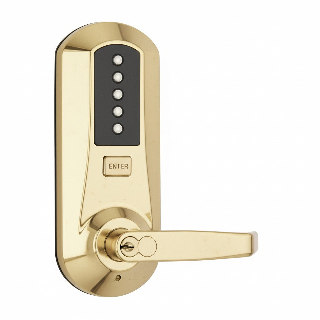 Industrial strength combination lock from the leader in top of the line security solutions, dormakaba. dormakaba has been making high quality security products for over 100 years. The Simplex 5000 Series is an ANSI rated Grade 1 security lock that is highly weather resistant. Entry is gained via a 1 to 5 digit code that is sequential. Vandal resistant, the Simplex series of PIN based locks have found widespread acceptance in high-traffic commercial, institutional, and government facilities.